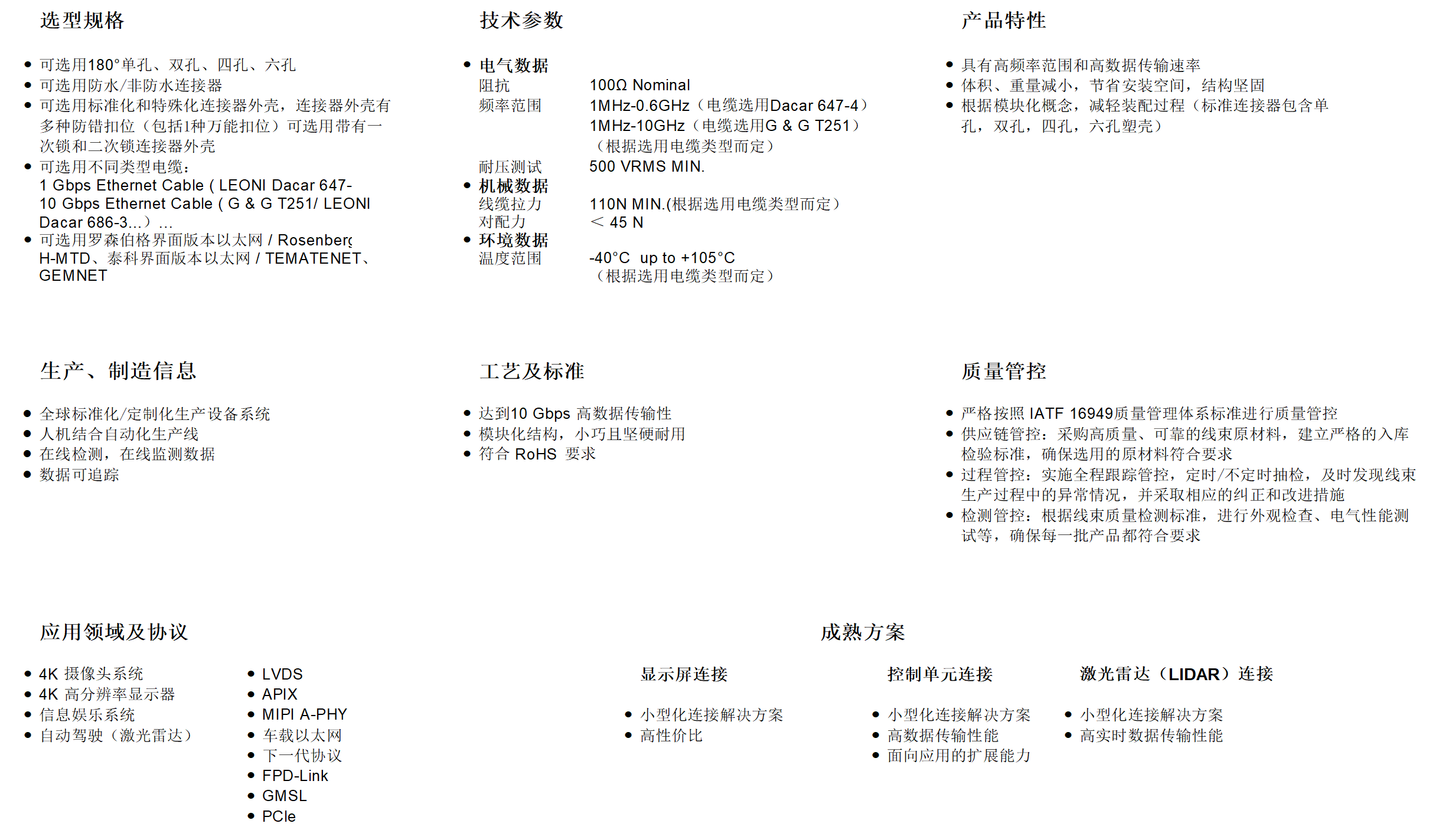 差分信号类-MATENet 以太网线缆组件